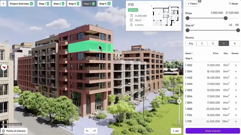 Transform your project into an immersive sales ecosystem. Give buyers the tools to explore, discover, and build a deep connection—all in the browser.