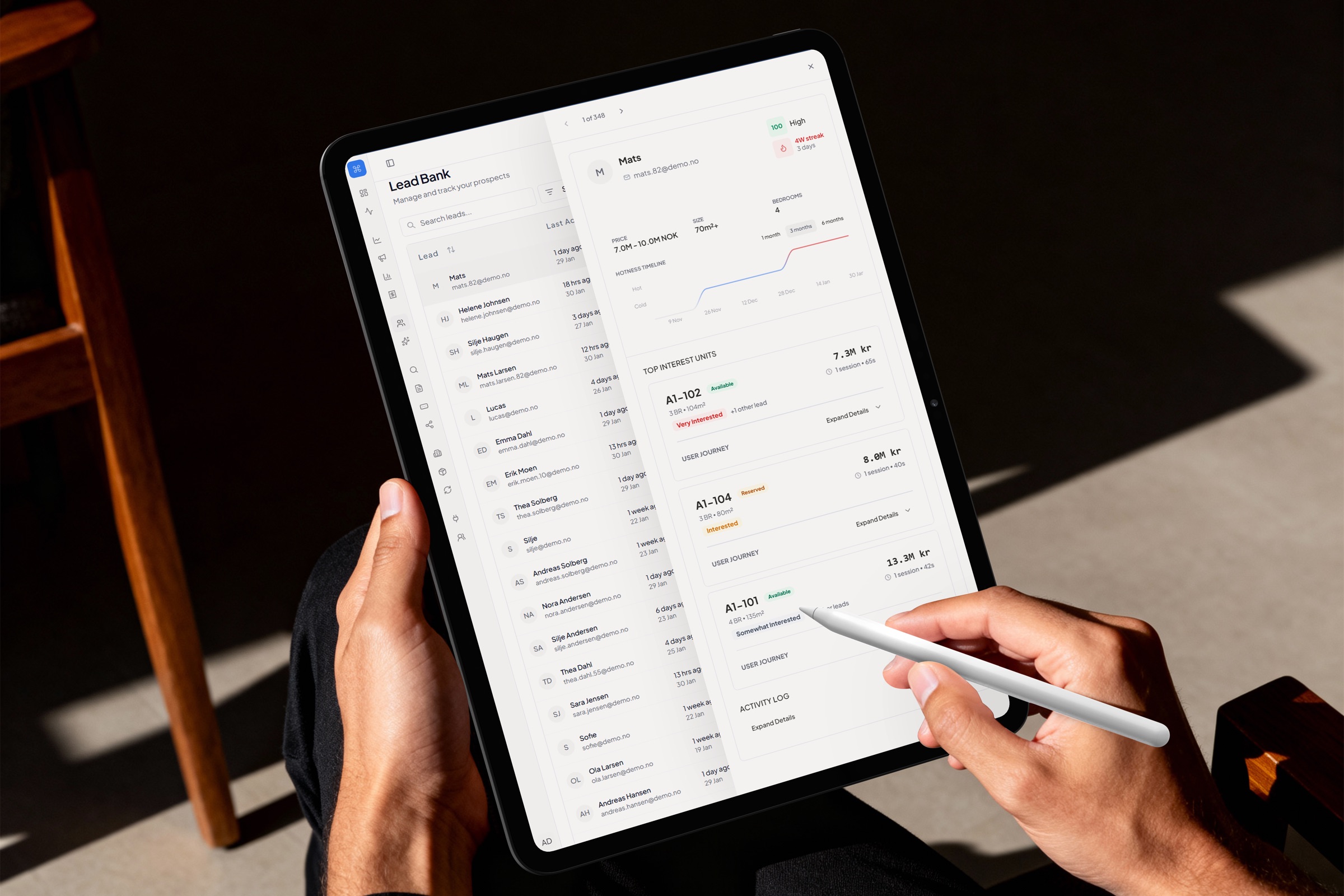 Complete buyer profiles with every unit viewed, filter used, and time spent exploring.